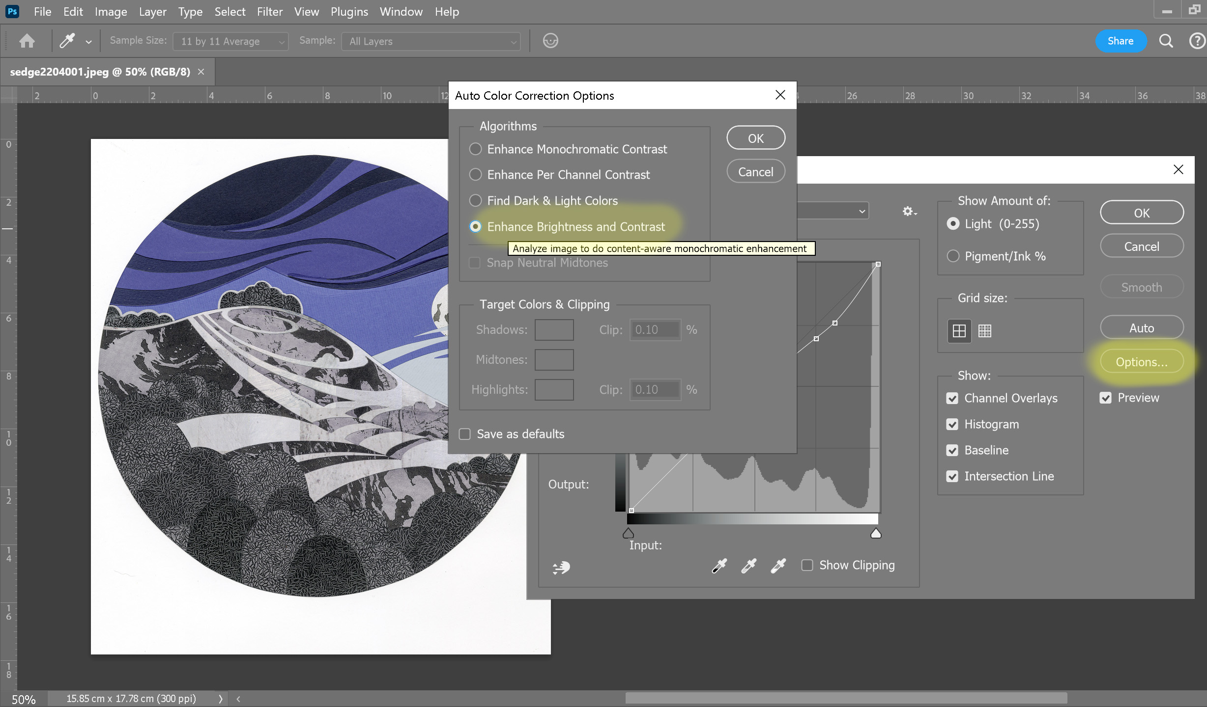 If you work your way down the tick boxes, you can easily see how they affect the overall image and pick a preference based on how it will print. You can save that as your default setting or you can further fine tune the options if you need to.